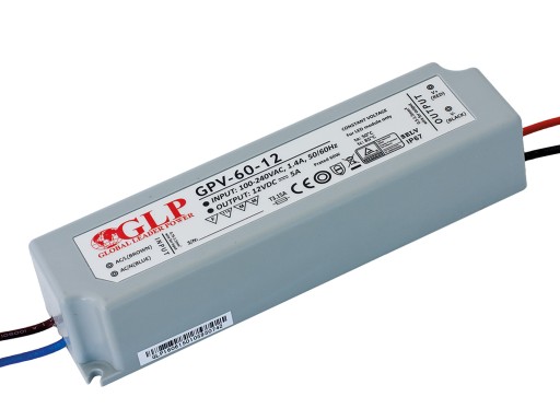 Zasilacz wodoodporny stałonapięciowy impulsowy IP67 GPV-60-12 marki GLP, największej polskiej firmy MPL, o parametrach: