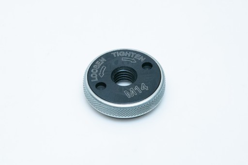 Nakrętka służy do szybkiego montażu i demontażu tarczy szlifierskiej bez użycia dodatkowych narzędzi.