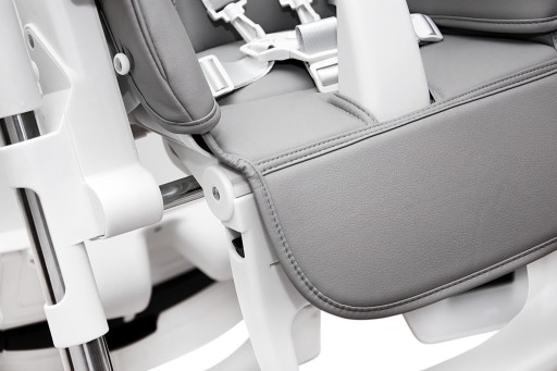 - Płynna regulacja wysokości siedziska oraz podnóżka (za pomocą przycisków) - bez konieczności wysadzania dziecka