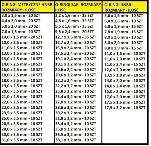 Nasz zestaw oringów HNBR posiada wysoką odpornością na: Ozon, Paliwa dieslowskie, Oleje pochodzenia roślinnego i zwierzęcego, lekkie oleje opałowe, Oleje mineralne, smary, płyny hydrauliczne, Oleje silnikowe, opałowe i transformatorowe, Emulsje olejowo-wodne typu HSA, HSB, Węglowodany alifatyczne jak: benzyna, propan-butan, Rozcieńczone kwasy, zasady i sole, Alkohole, Mieszaniny glikoli z wodą do 150°C, Kwaśne gazy, Wodę do 60°C