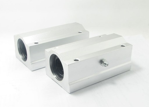 Łożysko liniowe uszczelnione, zamknięte tupu LM w obudowie aluminiowej, anodowanej z gwintowanymi otworami montażowymi. Obudowa posiada cztery nagwintowane otwory montażowe, a zastosowane łożyska są wymienne i posiadają standard wymiarowy japoński (LM)