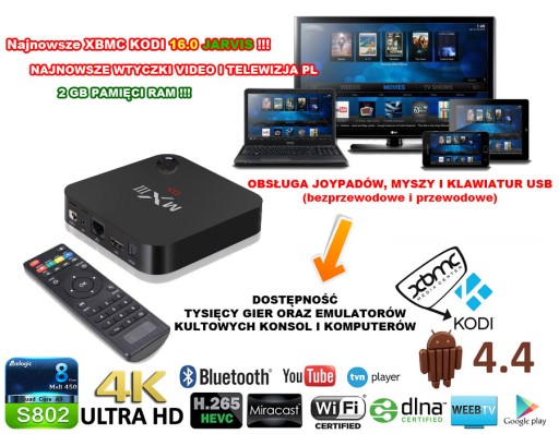 Multimedialne centrum rozrywki, odtwarzacz multimedialny MX III 4K z systemem Android 4.4.2
