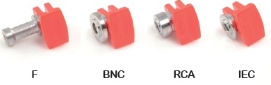 - Cztery wymienne końcówki - F, BNC, IEC, RCA
