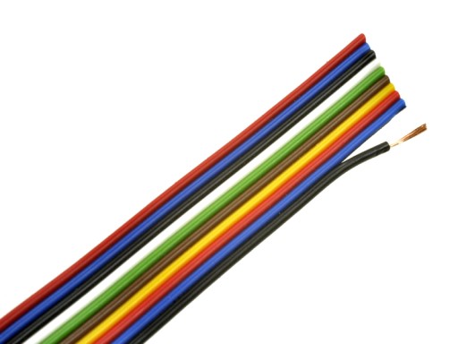 Przewody wielożyłowe wstążkowe płaskie, wielobarwne - z oznaczeniem żył kodem kolorów, z żyłami wielodrutowymi z miedzi nie pokrywanej, o izolacji PVC. Przeznaczone do wykonywania połączeń stałych w urządzeniach elektronicznych telekomunikacyjnych.