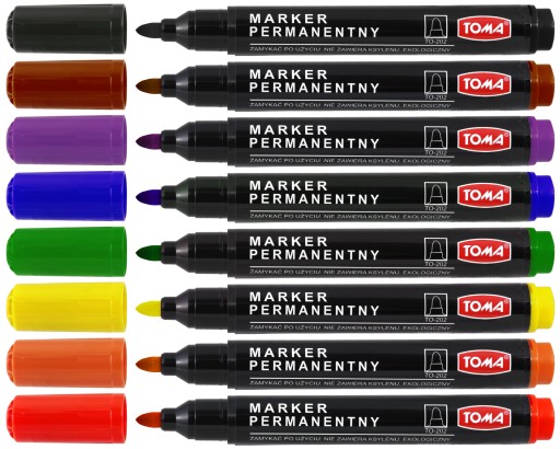 Marker permanentny z wyjątkowo trwałym tuszem wodoodpornym, nie zawierający ksylenu i toluenu. Do pisania po wszystkich powierzchniach. 7 wyrazistych kolorów. Okrągła końcówka o grubości 2.5 mm.