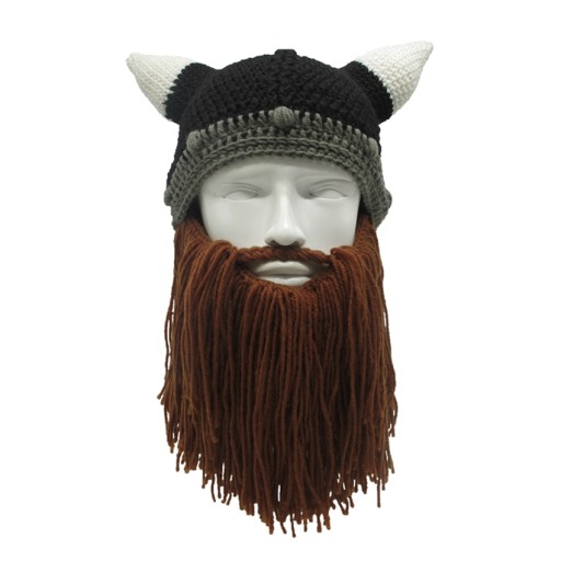 ВИКИНГ ШЛЯПА ВИКИНГ С БОРОДОЙ И РОГАМИ, КОРИЧНЕВЫЙ КРАСНЫЙ