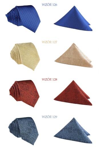 Krawat i poszetka są z takiego samego materiału i w tym samym kolorze.