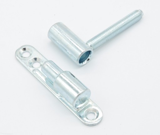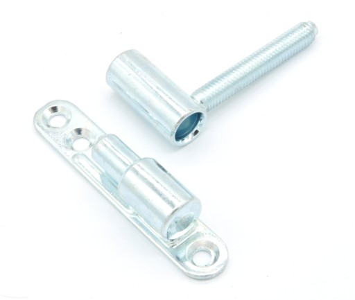 Opis: zawias wykonany jest z metalu ocynkowanego (ocynk biały tzw. srebrny). Jest to zawias uniwersalny bez odmian. Część męską zawiasu przykręca się do futryny drzwi 3 wkrętami, część żeńska jest wkręcana w skrzydło drzwi. Taki sposób montażu nie tylko gwarantuje solidne mocowanie drzwi, jest również łatwiejszy w wykonaniu niż montaż standardowych zawiasów wkręcanych w futrynę i skrzydło drzwi. Zawias tego typu może być stosowany tak w drzwiach wewnętrznych jak i zewnętrznych, wykonanych z drewna jak i materiałów drewnopodobnych.