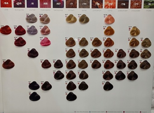 Odcienie zawierające pigment P5 (zwiększający intensywność koloru występuje w odcieniach miedzianych, mahoniowych, czerwieniach i fioletach na karcie kolorów zaznaczone gwiazdką)