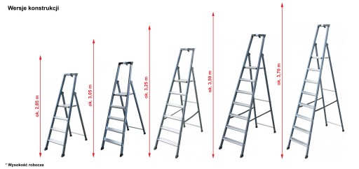 - Platforma (= najwyższy stopień) ryflowana aluminiowa, zabezpieczająca przed poślizgiem