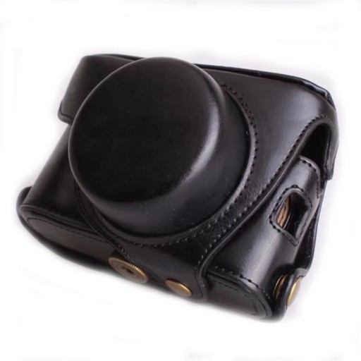 Skórzane etui z osłoną obiektywu, które chronią aparat i obiektyw, pozwalając jednocześnie na szybkie robienie zdjęć.