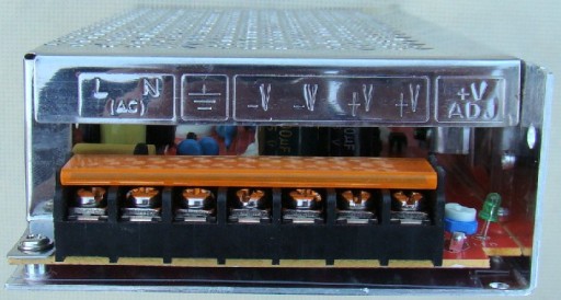 Zasilacz posiada solidną metalową obudowę oraz korektor (+V ADJ) którym możemy w niewielkim stopniu skorygować napięcie wyjściowe.