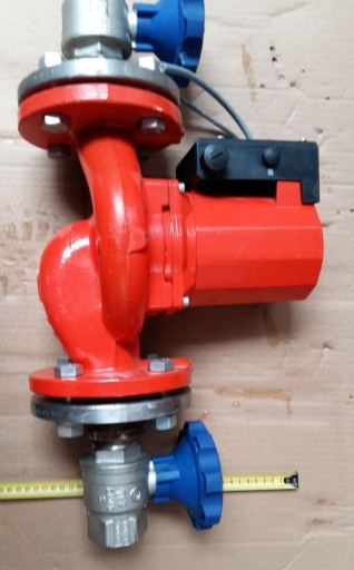 Pompa obiegowa do montażu w rurociąg lub do ustawiania na fundamencie. Konstrukcja i sztywno przymocowanym silnikiem kołnierzowym oraz zaworami.