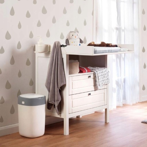 Wrzuć pieluszkę do kosza. Przekręć uchwyt i poczuj kliknięcie. Pielucha jest teraz owinięta wielowarstwową folią antybakteryjną, która blokuje zapachy pieluchy i zarazki. Wbudowany tłok popycha pieluchę do pojemnika, gdy zamykasz pokrywę, utrzymując czyste ręce i świeży pokój.