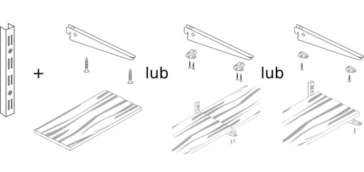 - przy montażu półek z płyt meblowych możemy zachować rozstawy listw nośnych (50 - 80 cm)