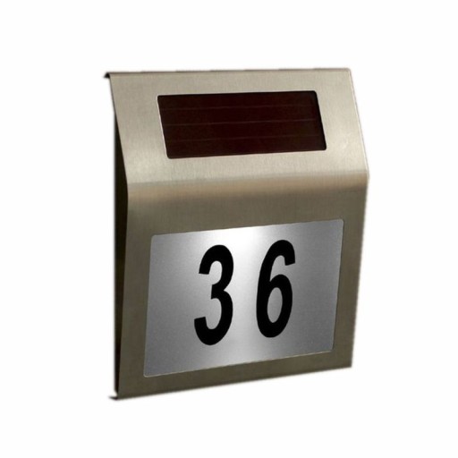 Panel słoneczny, znajdujący się w górnej części obudowy ładuje akumulator (Ni-MH 1.2 V, 600 mA), który po zmroku zasila 2 diody podświetlające mleczny ekran. Na nim jest naklejony numer domu. W zestawie otrzymują Państo numery do naklejenia ( 3 arkusze od 0 do 9, 1 arkusz od "a" do "f"). Urządzenie jest bardzo estetycznie wykonane z blachy kwasoodpornej i aluminium. Prosty układ zasilający sprawia, że jest bezawaryjne, a nasz numer jest widoczny 24 godziny na dobę. Wygląda bardzo nowocześnie i posłuży wiele lat. Wymiary 20 x 18 x 3 cm.