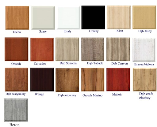 wykonane z płyty laminowanej 18mm obklejonej obrzeżem meblowym plastikowym