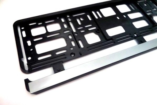 Ramka uniwersalna pod tablicę rejestracyjną czarna + srebna listwa.