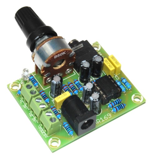 Uniwersalny niskoszumny wzmacniacz słuchawkowy (głośnikowy) stereo z regulacją wzmocnienia, wykorzystujący specjalizowany układ TDA2822, bazuje na zmodyfikowanej podstawowej aplikacji producenta. Opracowana konstrukcja w przeciwieństwie do dostępnych na rynku, charakteryzuje się niskimi szumami i czystym dźwiękiem. Moduł posiada wyjście typu mini-jack stereo oraz gniazdo do podłączenia zasilacza wtyczkowego. Można go zasilać także z baterii lub z komputerowego portu micro/macro/USB poprzez specjalny kabel-adapter DC (brak w zestawie). Dzięki niskiemu poborowi prądu i szerokiemu zakresowi napięcia zasilania moduł można zasilać z baterii. Ze względu na niewielkie wymiary moduł można wbudować w inne urządzenie.