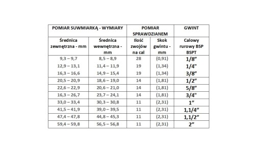 JEŚLI STAJESZ PRZED KONIECZNOŚCIĄ WYBORU ARMATURY GWINTOWANEJ - MUSISZ POZNAĆ ŚREDNICĘ GWINTU ZEWNĘTRZNEGO LUB WEWNĘTRZNEGO.