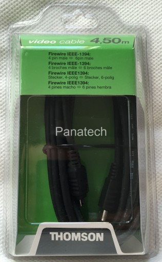 Dobrej jakości przewód FireWire 4/6 o długości 4,5 m.