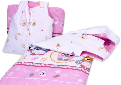 Długość całkowita śpiworka 116 cm, szerokość pod pachami 45 cm, szerokość na dole 60 cm. Tkanina: bawełna 100%. Wyrób przed użyciem należy uprać w temp. 40st.C. Prasować w temp. 150st.C. Nie suszyć w suszarce bębnowej.