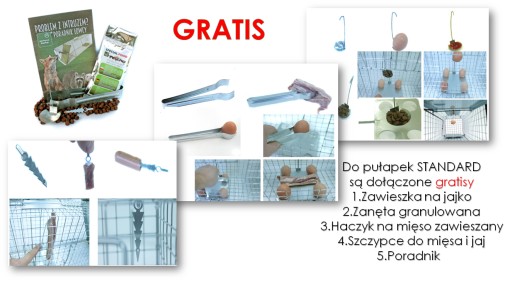 TACA ZANĘTOWA NA 4 JAJA !!!! Pułapka posiada 4 otwory na przynętę w postaci jaja - ulubionego przysmaku gryzoni w tym kun, łasic, szczurów ale także kotów i lisów, wydr. Zwiększa to szanse na uruchomienie zapadki o 300% w stosunku do tradycyjnych pułapek na jedno jajko. Jedyne takie rozwiązanie na świecie ...wraz z ubytkiem kolejnego jaja zwiększa się czułość zapadki, z ubytkiem następnego jaja czułość jeszcze się zwiększa lub pułapka się zamyka na zasadzie przewagi masy jaj z jednej strony. To rozwiązanie powoduje że możemy załadować od razu 4 jaja i spokojnie czekać na intruza.