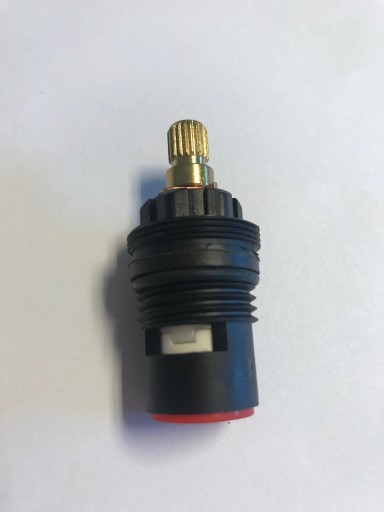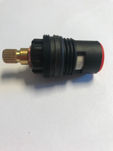 Głowica ceramiczna to trwały produkt, który zapewnia szczelność i bezawaryjność baterii. Powierzchnia jej jest gładka, dzięki czemu zapobiega osadzaniu się kamienia. Kąt obrotu głowicy wynosi 90°, co sprawia, że szybko się otwiera i zamyka. Wykonana jest z wytrzymałego tworzywa, a czpień montażowy posiada 20 klinów. Produkt przeznaczony jest do baterii dwuuchwytowej, do wody ciepłej.