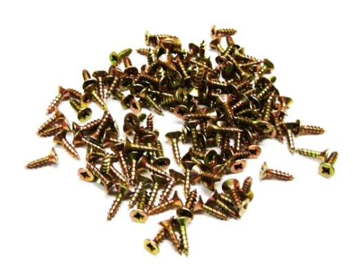 Wysokiej jakości wkręty do drewna, używane w meblarstwie do przykręcania prowadnic, zawiasów, komandorków, wieszaków, itp.