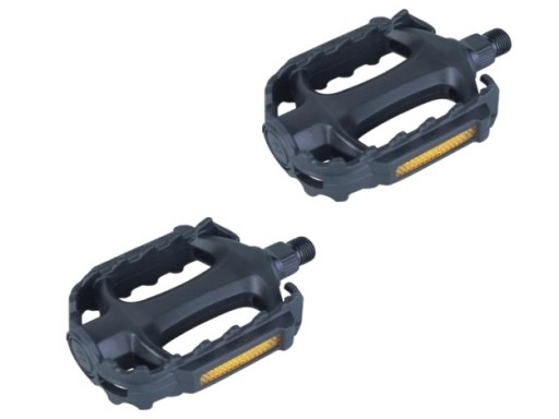 Pedały o korpusie wykonanym z tworzywa wyposażone w odblaski. Pedały posiadają łożyska kulkowe. Posiadają standardowy gwint 9/16 '. Kolor czarno