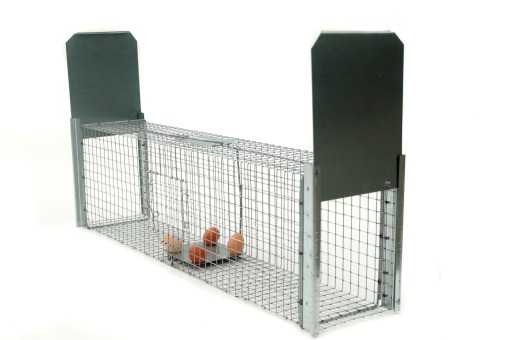 Pułapka posiada klapkę rewizyjną na środku - która służy do zakładania zanęty - to bardzo ważne by nie sięgać ręką w głąb pułapki ! W większości pułapek na rynku klapka rewizyjna to najsłabszy punkt - silny zwierz może wyrwać słabo zabezpieczona klapkę.
