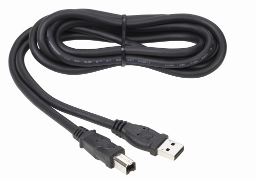 Wysokiej jakości kabel USB A – USB B o długości 3,0 metrów, ekranowany, certyfikowany, owalny, w kolorze czarnym.