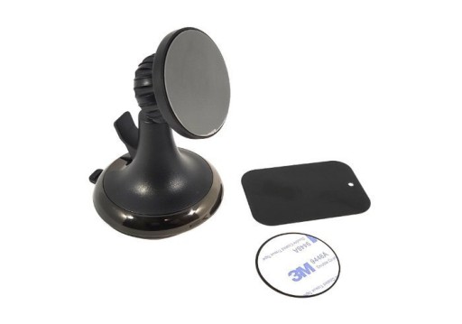 Uchwyt do telefonu, mocowany na przyssawkę do szyby. Dzięki regulowanej, obrotowej konstrukcji uchwytu w zakresie 360 stopni, można korzystać z urządzeń w dowolnej pozycji. Szybki i prosty montaż bez używania narzędzi. Uchwyt posiada wbudowany mocny magnes dzięki, któremu po zamontowaniu metalowej podkładki do telefonu, nie spada, trzyma się mocno i cały czas pozostaje w zasięgu ręki.