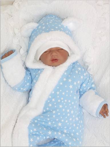 Lalka na zdjęciu ma 56cm długości i nosi ten kombinezon w rozmiarze 56