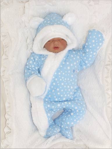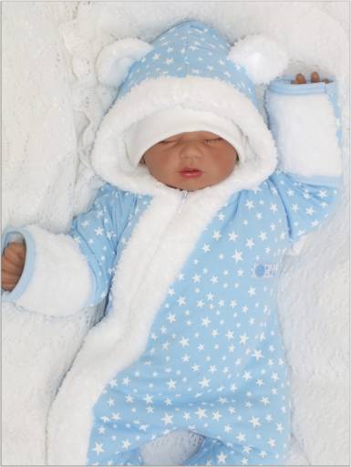 Kombinezon jest ocieplony mięciutkim misiem od wewnątrz, oraz posiada wbudowane rękawiczki.