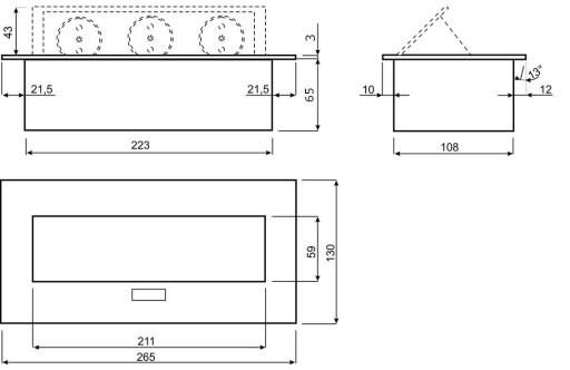 - wymiary otworu montażowego: 223 x 108 x 65 mm (szer./wys./gł.)