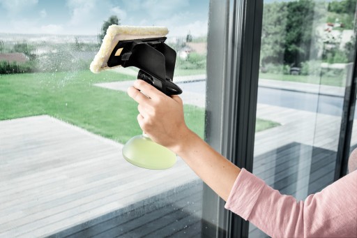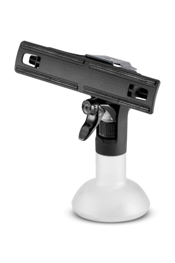Za pomocą nowego zestawu spryskiwacza Premium zawierającego regulowany uchwyt pada z łatwością można czyścić szerokie i wąskie okna.