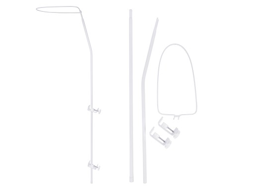 Składa się z dwóch rurek, na których umieszczone są dwa uchwyty z mocującymi śrubami. Uchwyty można dowolnie przesuwać na rurce jak również dostosować do grubości elementów, na których mocowany jest stelaż. Górna rurka połączona jest z owalnym drutem na który zakładamy baldachim