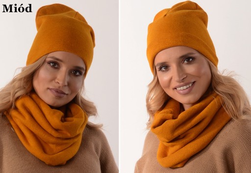 Komplet czapki z kominem POLSKIEJ produkcji, wykonany z przyjemnego puszystego i ciepłego materiału.