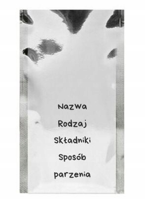 - Każda saszetka jest opisana nazwą, składem, terminem przydatności oraz sposobem parzenia