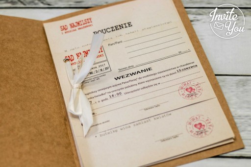 Oferujemy oryginalne i niepowtarzalne personalizowane zaproszenia ślubne w formie AKT SPRAWY.