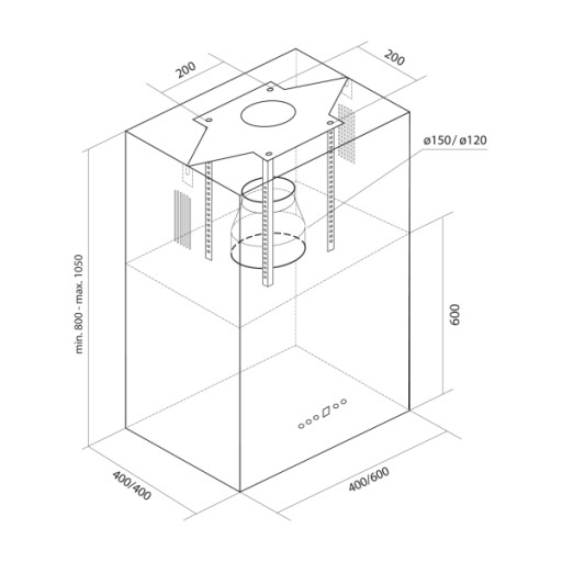To modny okap wyspowy , który idealnie prezentuje się w nowoczesnych kuchniach. Jego niepowtarzalny wygląd sprawia iż jest to jeden z najbardziej popularnych okapów wyspowych. Kolor inox nada elegancki charakter wnętrza kuchni.