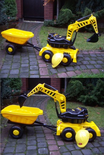 DZIECKO MOŻE STEROWAĆ RUCHOMĄ ŁYŻKĄ KOPARKI, OBRACAĆ SIĘ NA OBROTOWYM SIEDZISKU NAWET O 360 STOPNI, ORAZ PORUSZAĆ CAŁYM ZESTAWEM DO PRZODU I DO TYŁU ODPYCHAJĄC SIĘ NOGAMI !