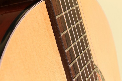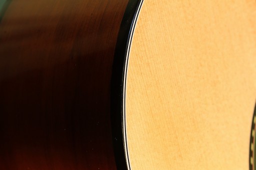 Płyta przednia wykonana z drewna, litego świerku a nie ze sklejki, co ma ogromny wpływ na lepszą jakość brzmienia.