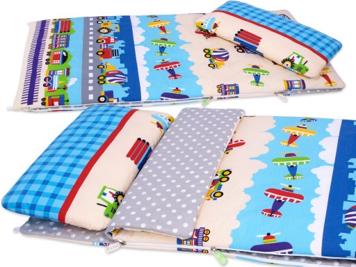 Wymiary: Dł. śpiworka bez poduszki 155 cm, szer, 70 cm. Poduszka 28 x 60 cm.