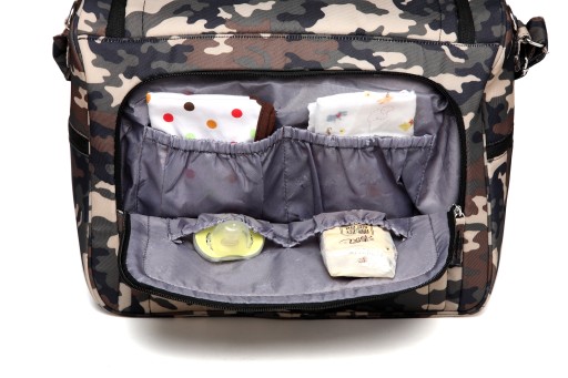 Lekko od środka podszyta i wodoszczelna torba dziecięca dysponuje dużą główną kieszenią o dużej pojemności w celu na przykład: zapakowania pieluchy czy ubrania, kieszenią na zamek błyskawiczny (schowek na klucze czy portmonetkę) i 2 izolowanymi termicznie organizerami (kieszeniami) do transportu i utrzymywania ciepła na przykład butelek i jedzenia dla dziecka.