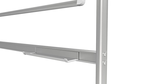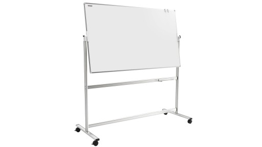Podwójna powierzchnia to jeszcze więcej miejsca na wszystkie ważne notatki. Jeśli potrzebujesz szybko wrócić do tekstu z drugiej strony, po prostu obróć tablicę. Umieszczona na stojaku na kółkach, jest też łatwa do przestawiania. Do zestawu dołączona została aluminiowa półka na markery, dzięki której uporządkujesz wszystkie przybory, aby były łatwo dostępne.