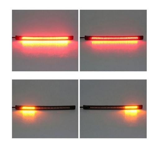 Elastyczny i wodoodporny pasek LED z 48 diodami. Lampa posiada wbudowane kierunkowskazy (skrajne punkty po prawej i lewej stronie), oraz światło pozycyjne i stop (centralna część lampy).