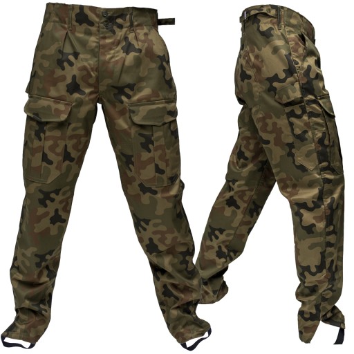 Nowe Spodnie Bojówki Moro Wojskowe z gumką pod stopą.