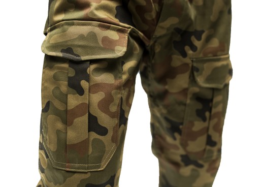 Nowe Spodnie Bojówki Moro Wojskowe z gumką pod stopą.